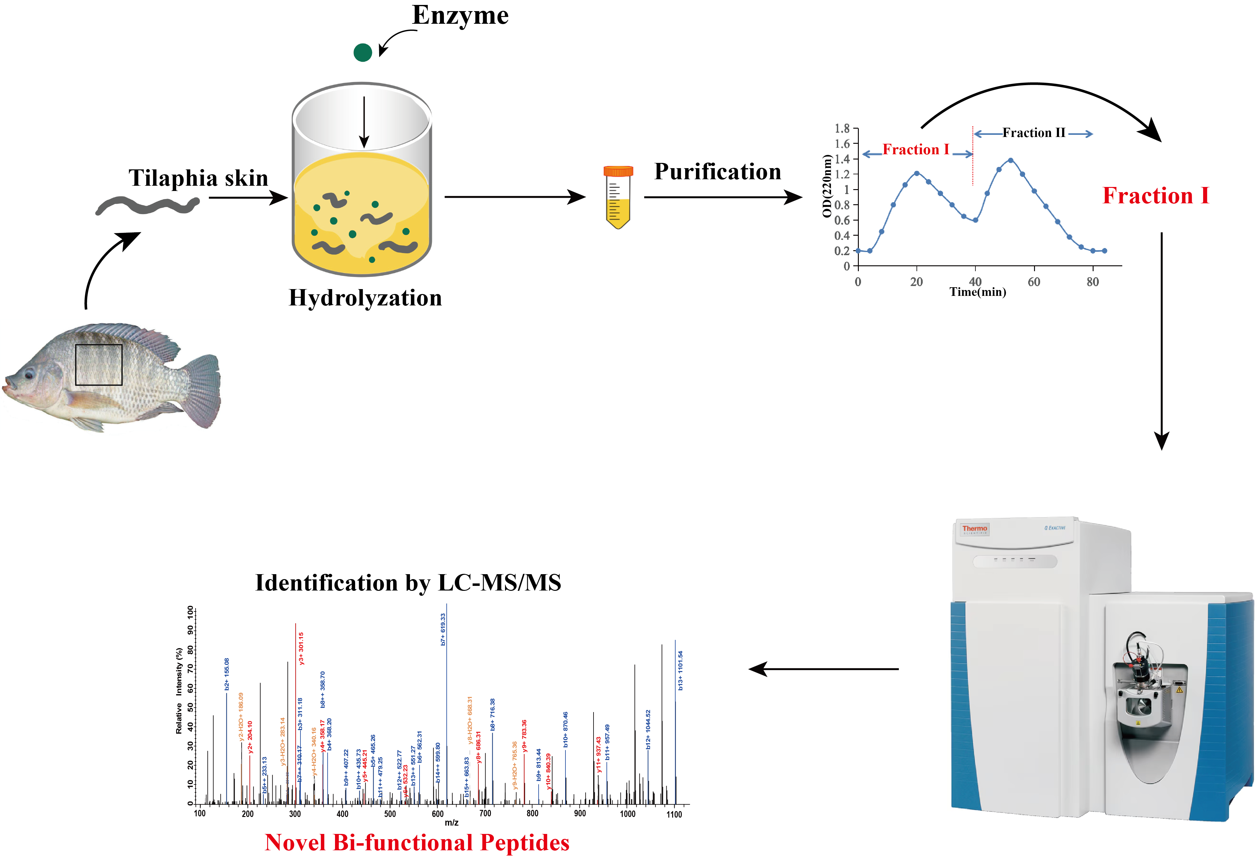 罗非鱼皮活性多肽筛选鉴定流程如下: